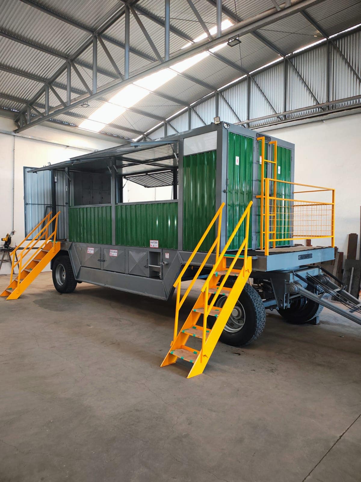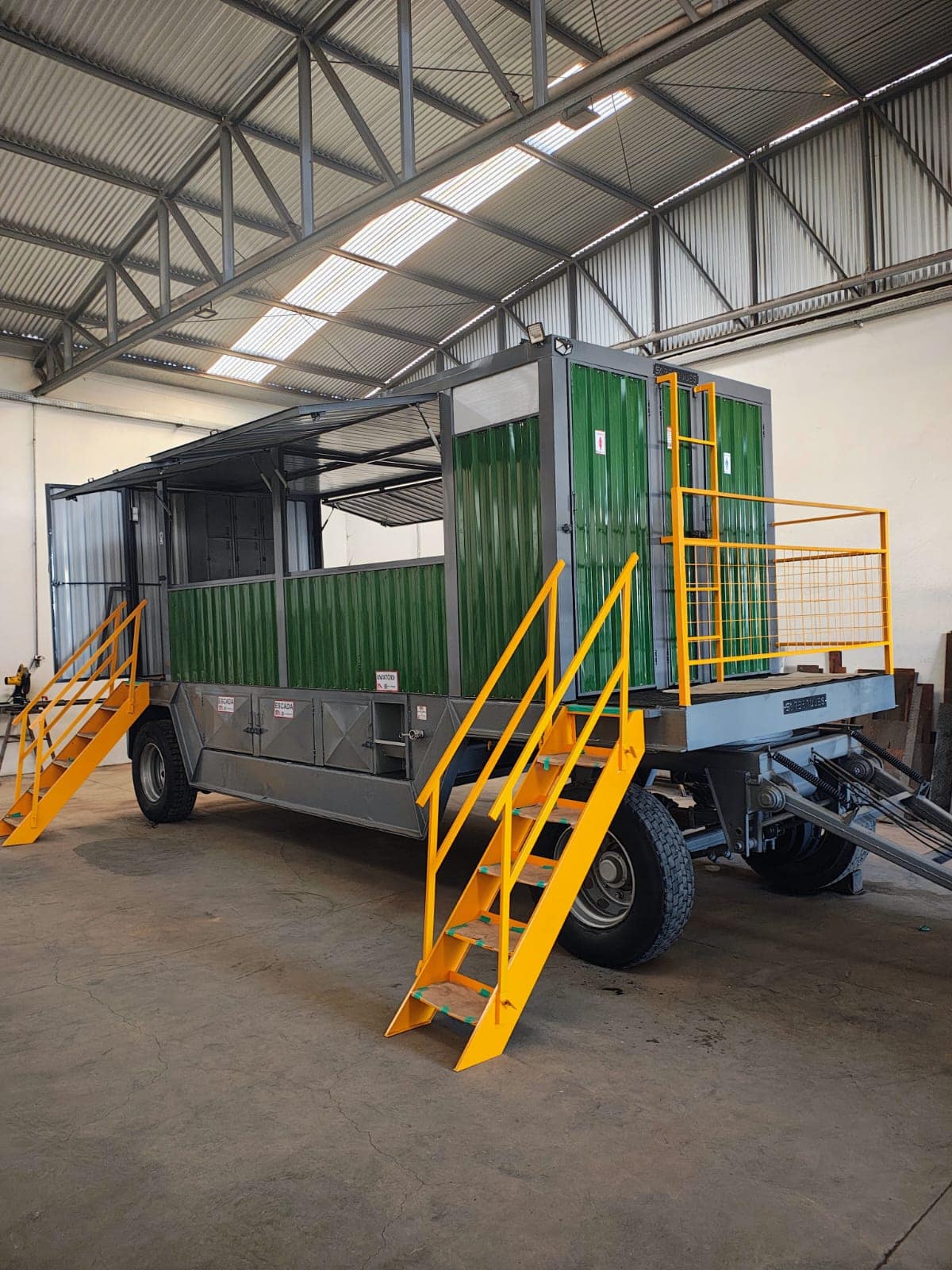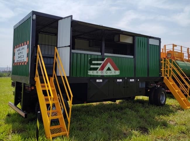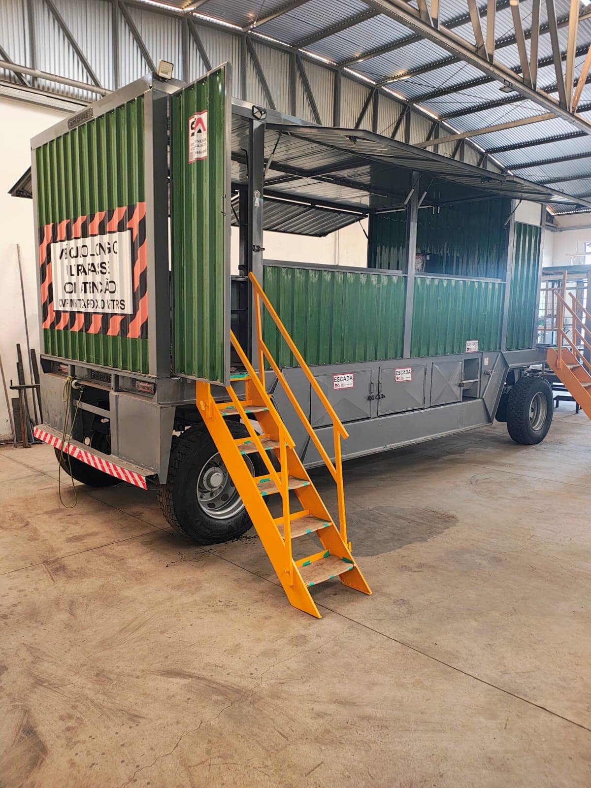 Área de vivência montada sobre chassi de Julieta canavieira, projetada para oferecer segurança, conforto e praticidade no campo, em total conformidade com a NR-31